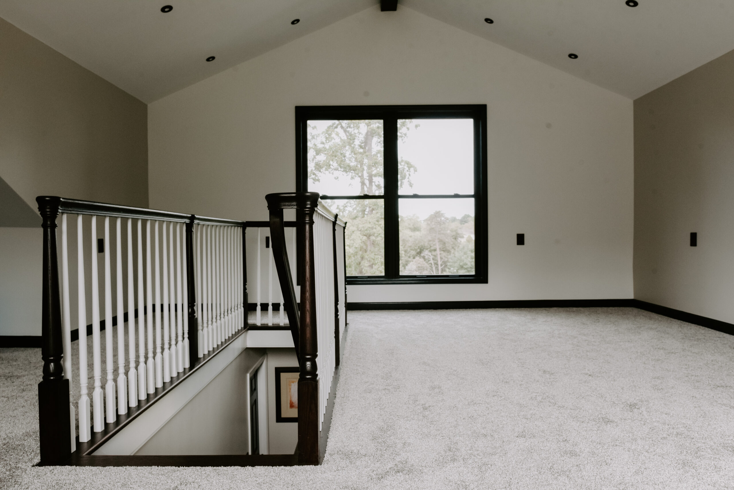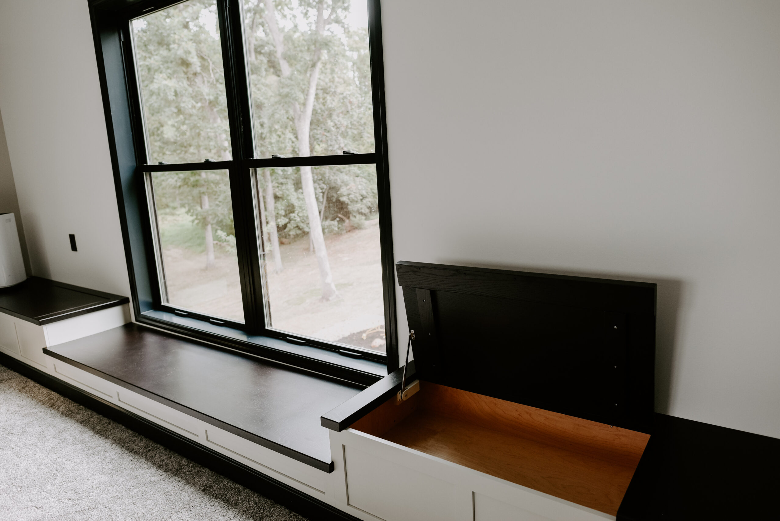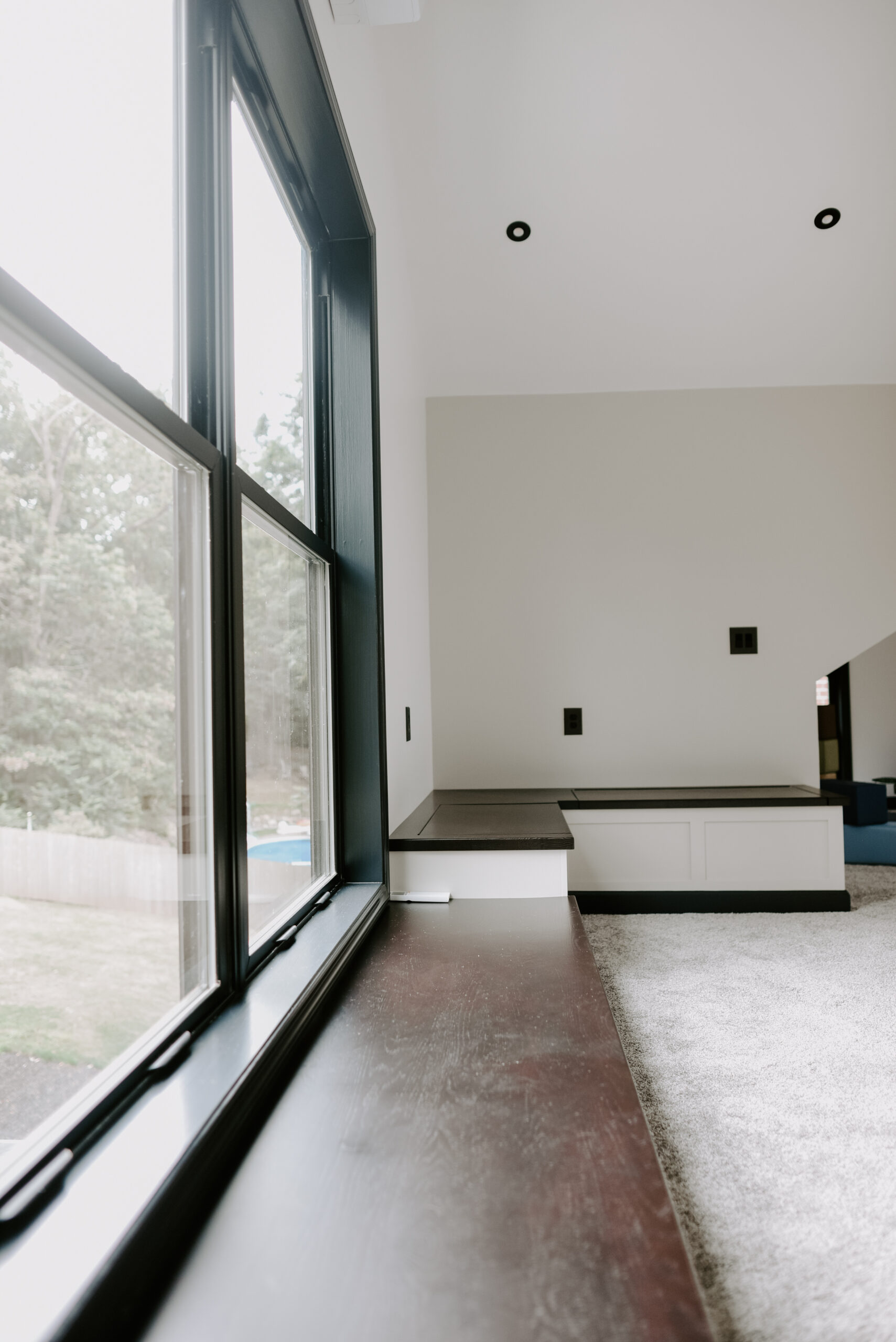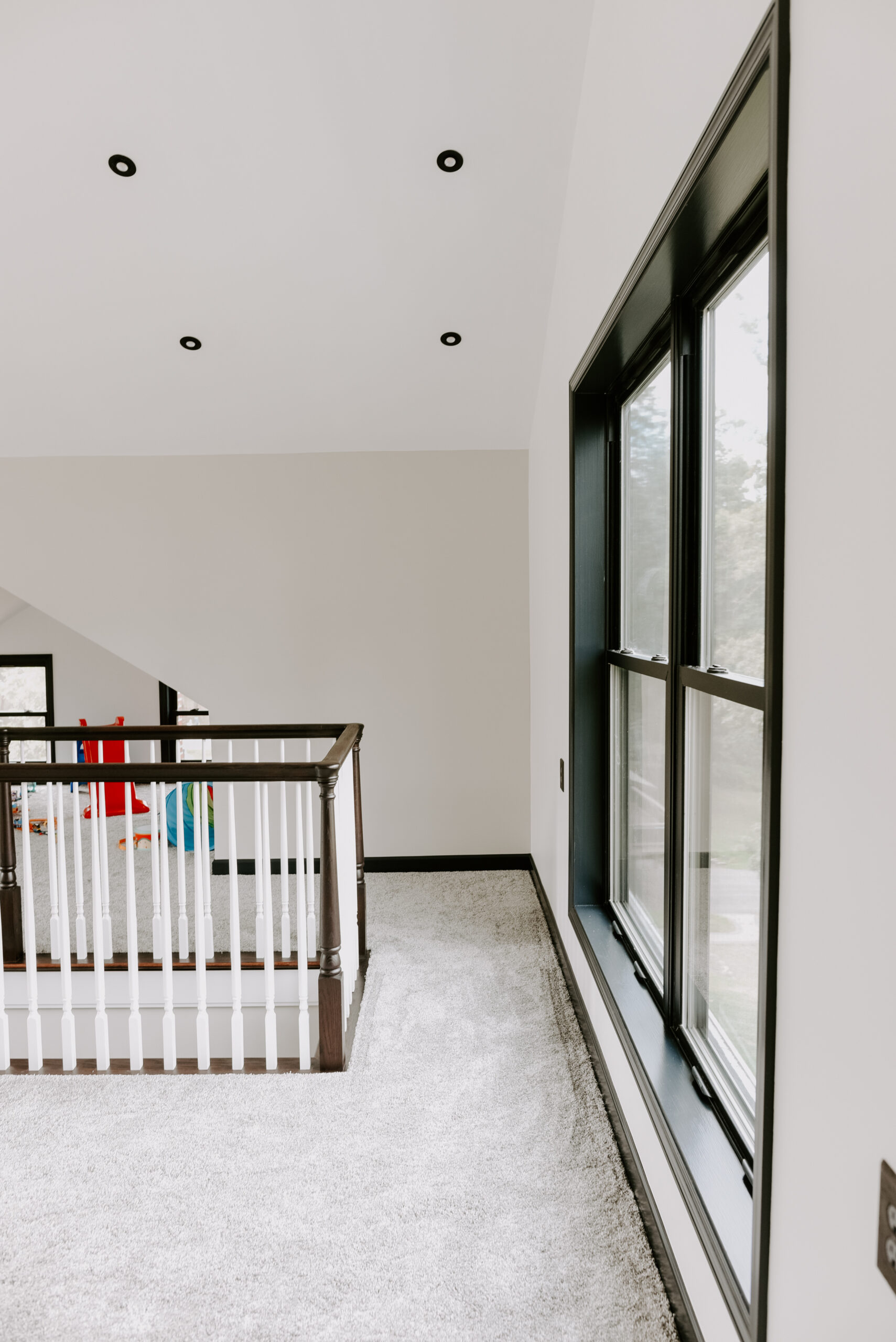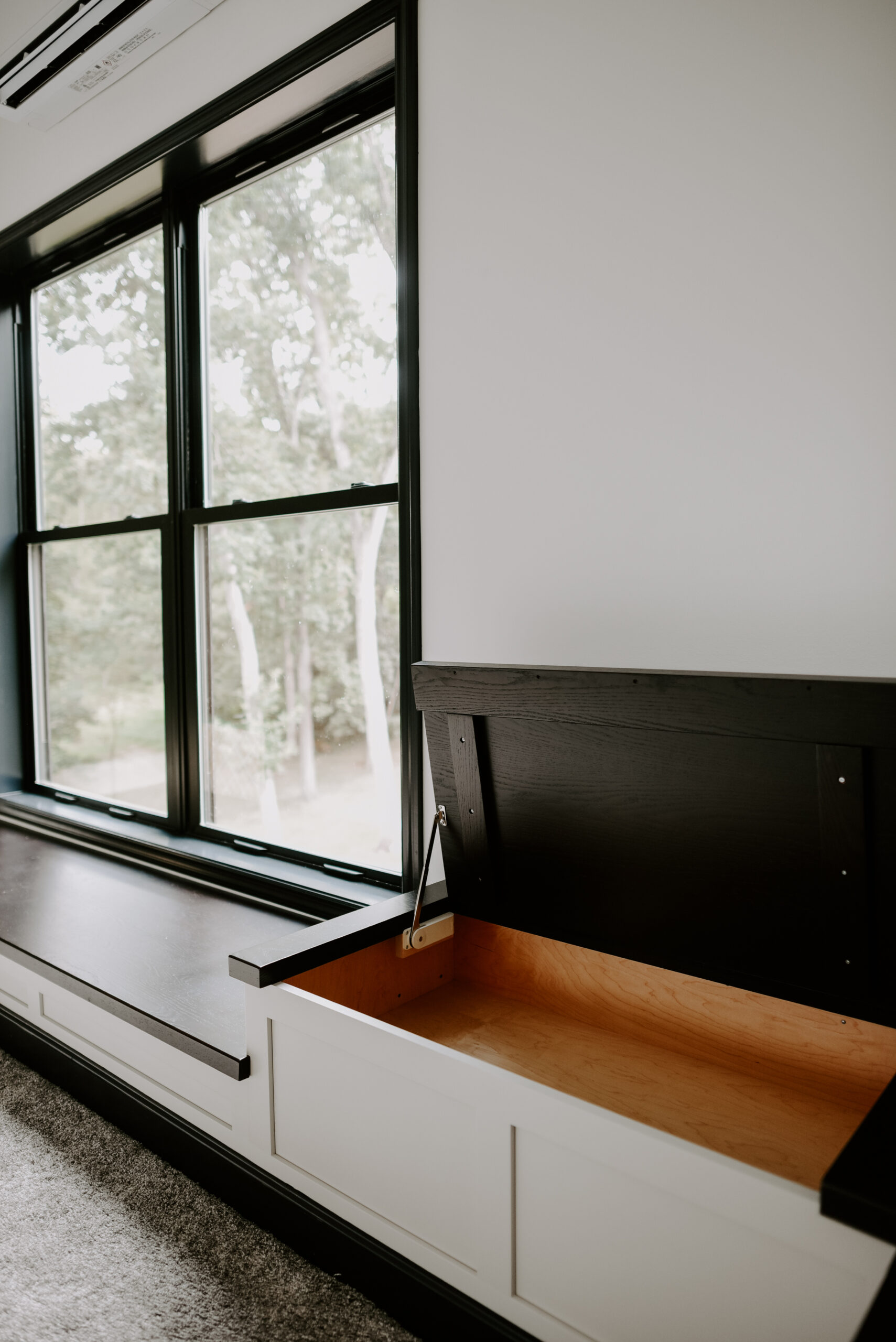 We took an unusable attic space and turned it into a functional third-floor living space. This addition blends seamlessly with the colonial-style home that makes a statement. We tied in the black trim from the rest of the home into this new space, both inside and out. Built-in window bench seating with storage, wood beam accent, and fresh carpet adds that cozy feel. Recessed lighting helps keep things light and bright, no matter what time of day. Two nooks with angled ceiling peaks allow for creating separate spaces to enjoy. Taking what once was just an attic crawl space and turning it into a new extension of their home, for the family to enjoy for years to come.