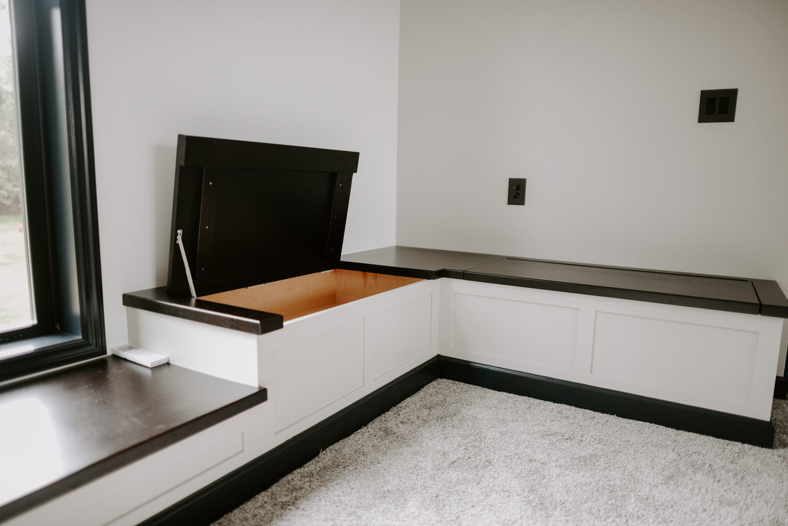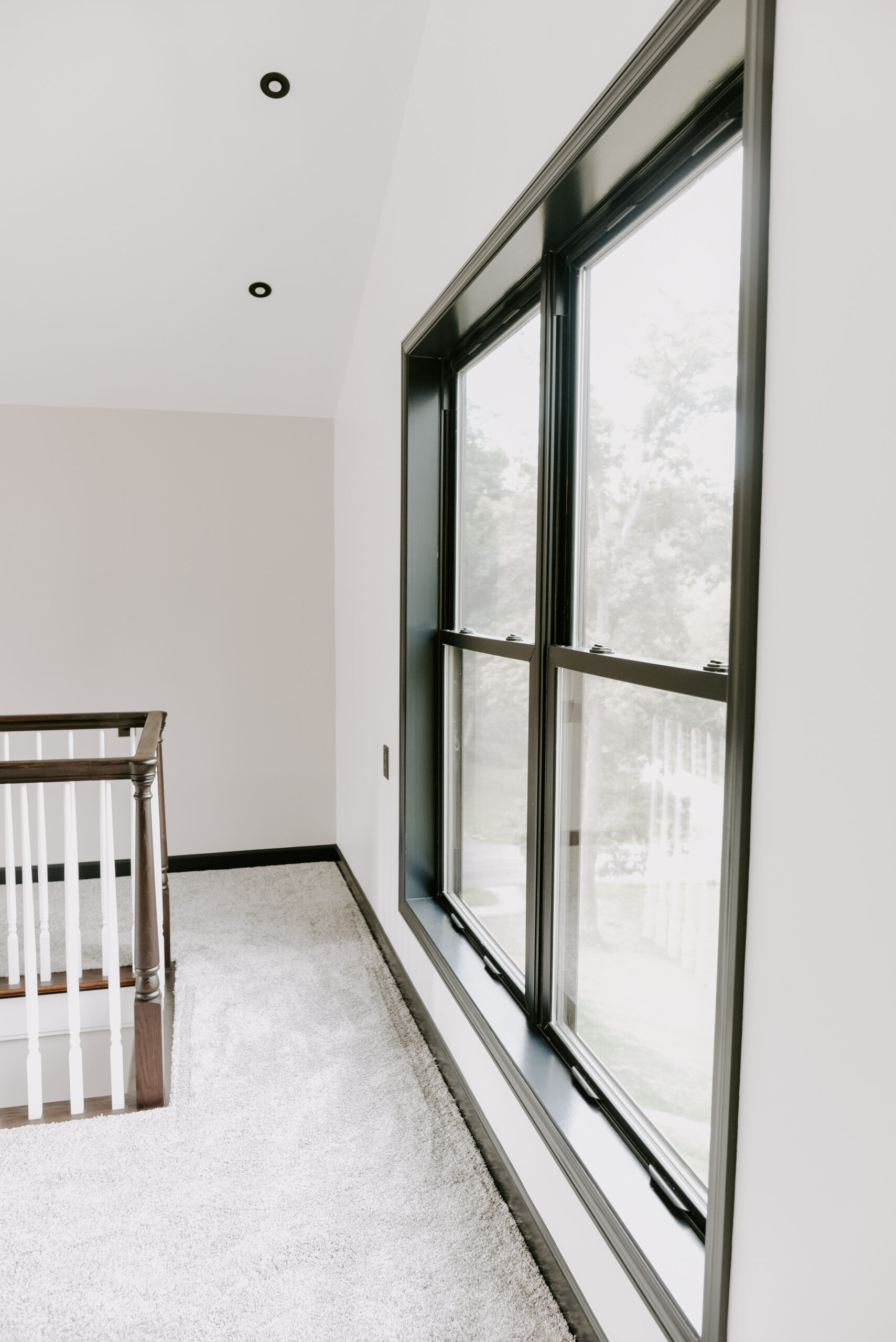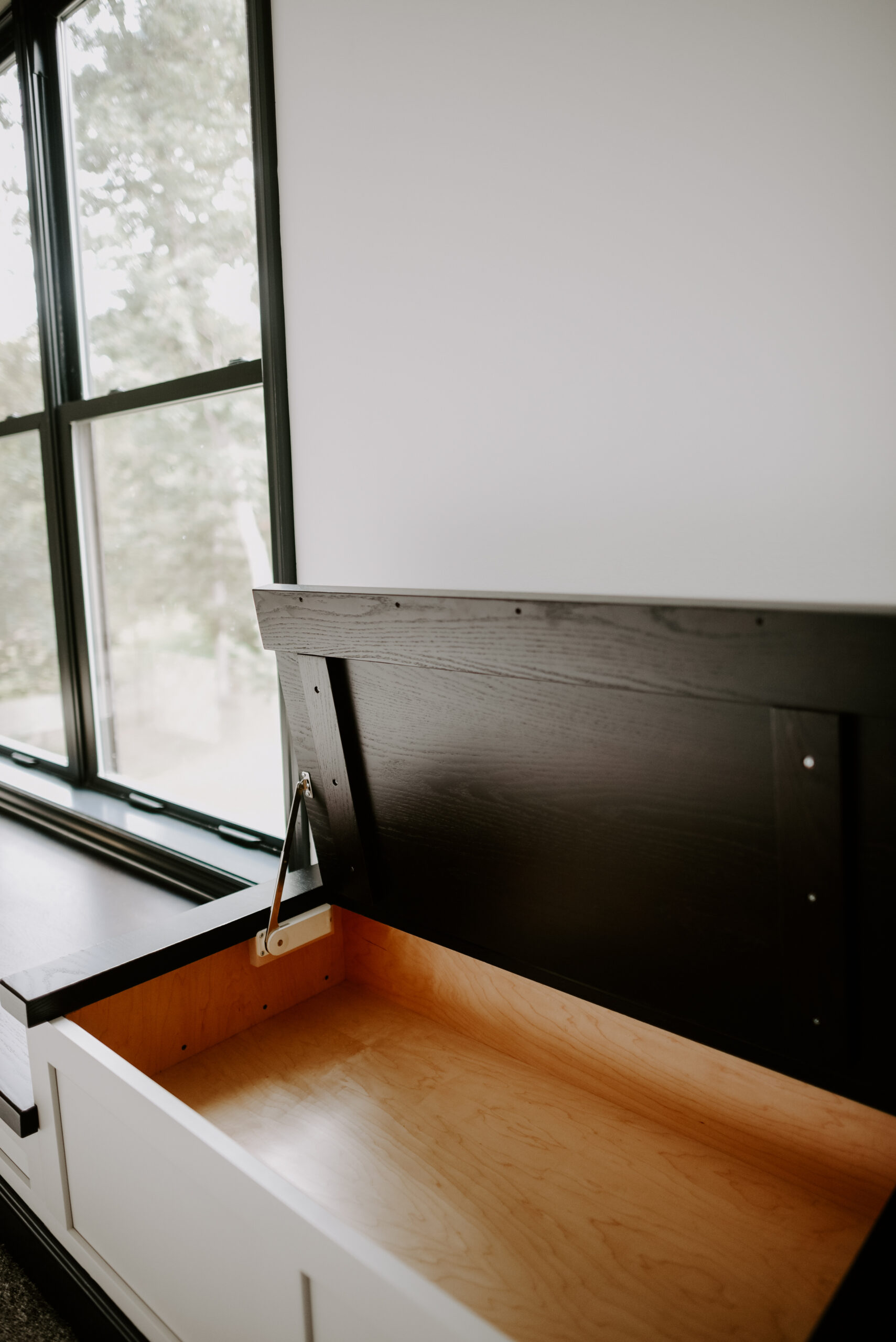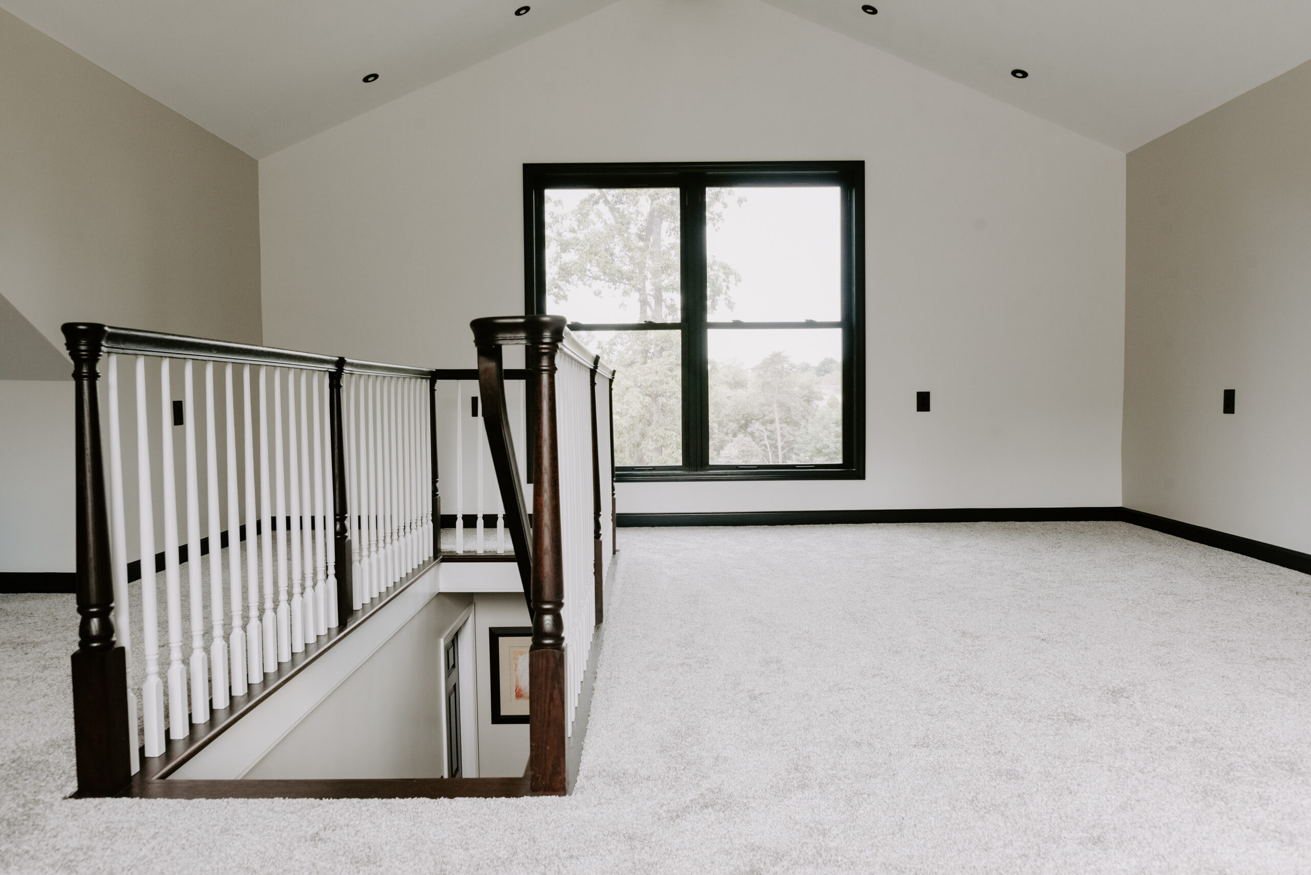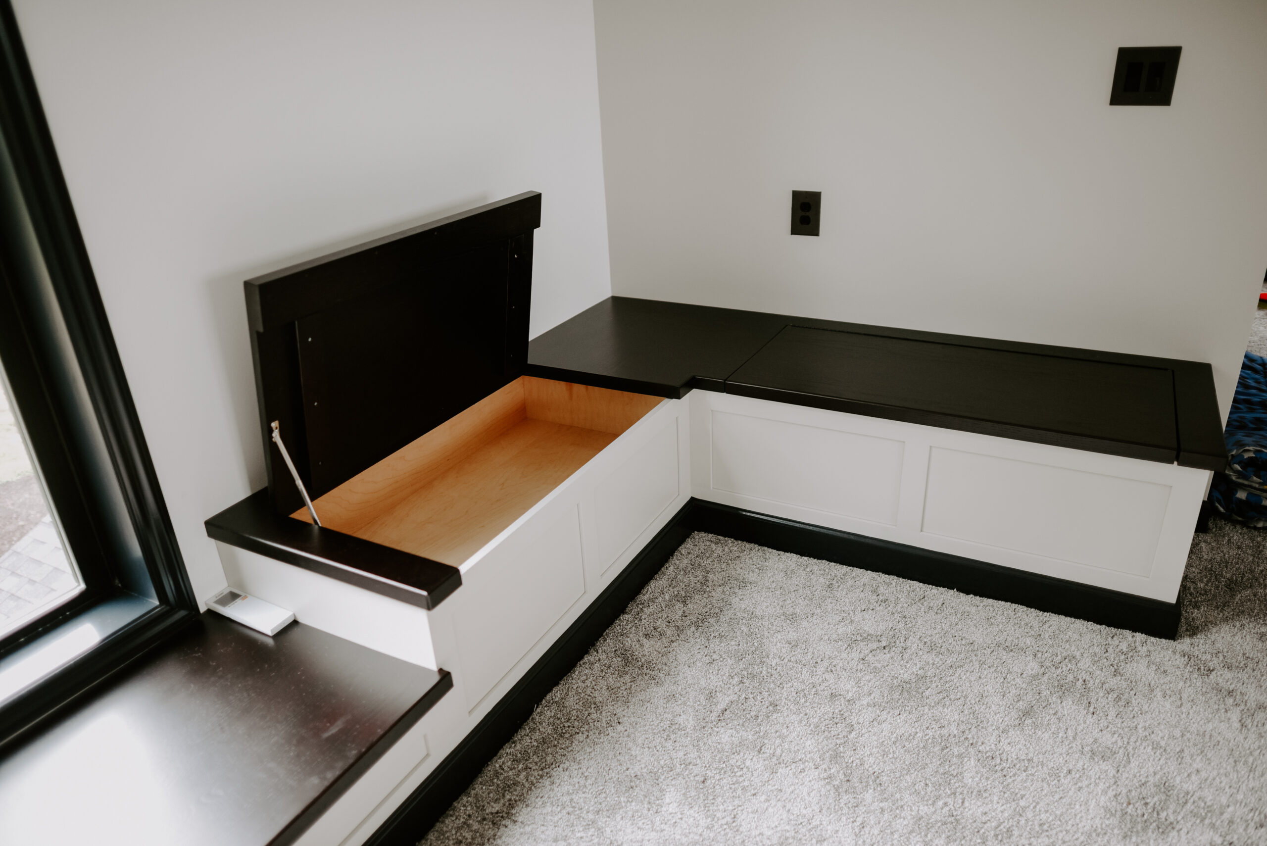 We took an unusable attic space and turned it into a functional third-floor living space. This addition blends seamlessly with the colonial-style home that makes a statement. We tied in the black trim from the rest of the home into this new space, both inside and out. Built-in window bench seating with storage, wood beam accent, and fresh carpet adds that cozy feel. Recessed lighting helps keep things light and bright, no matter what time of day. Two nooks with angled ceiling peaks allow for creating separate spaces to enjoy. Taking what once was just an attic crawl space and turning it into a new extension of their home, for the family to enjoy for years to come.